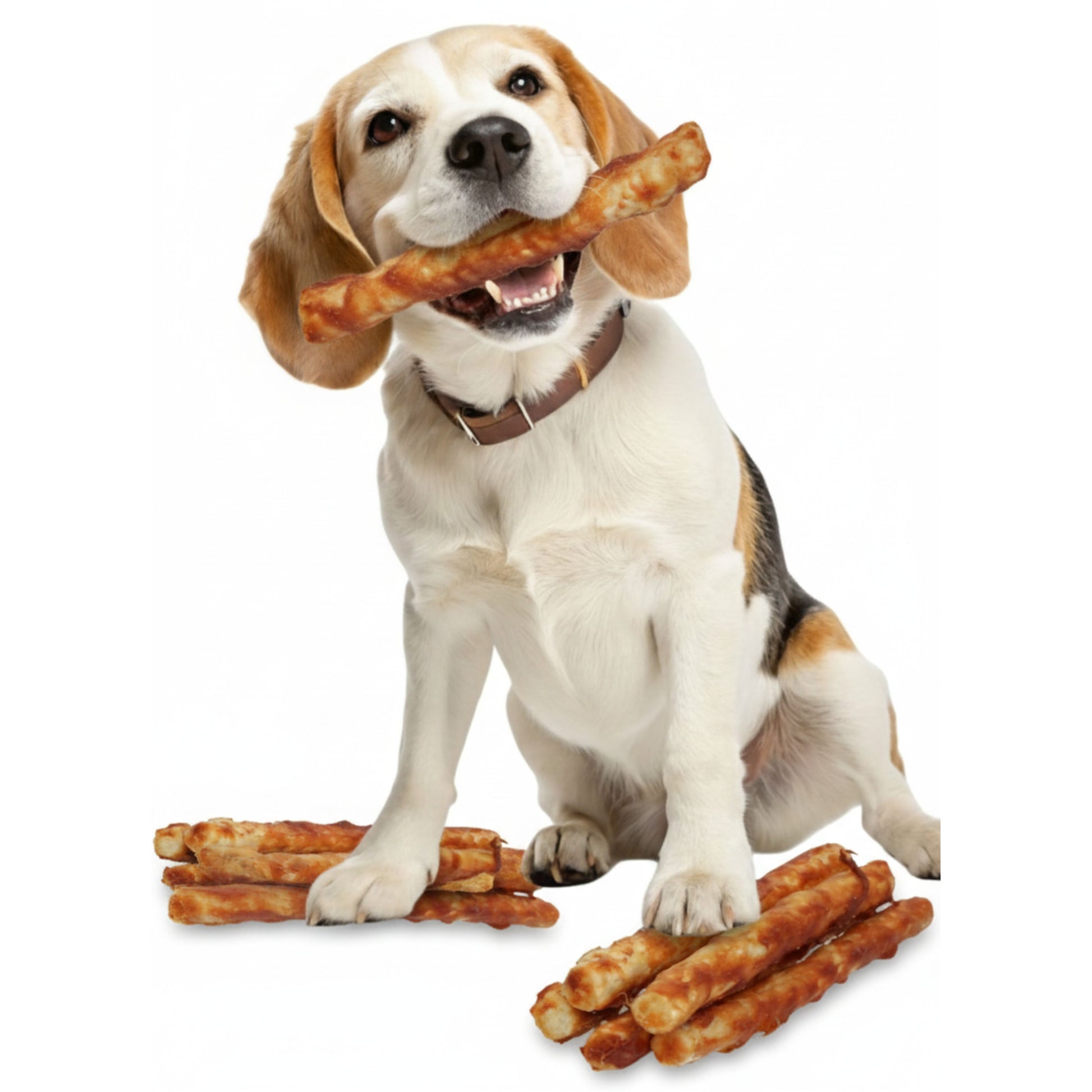 Naast de smakelijkheid, is de stick laag in calorieën (343,6 Kcal per 100 gram) en daarmee ook een verantwoorde snack. Dankzij de verschillende afmetingen is er voor elke hond een passende snack te vinden.
