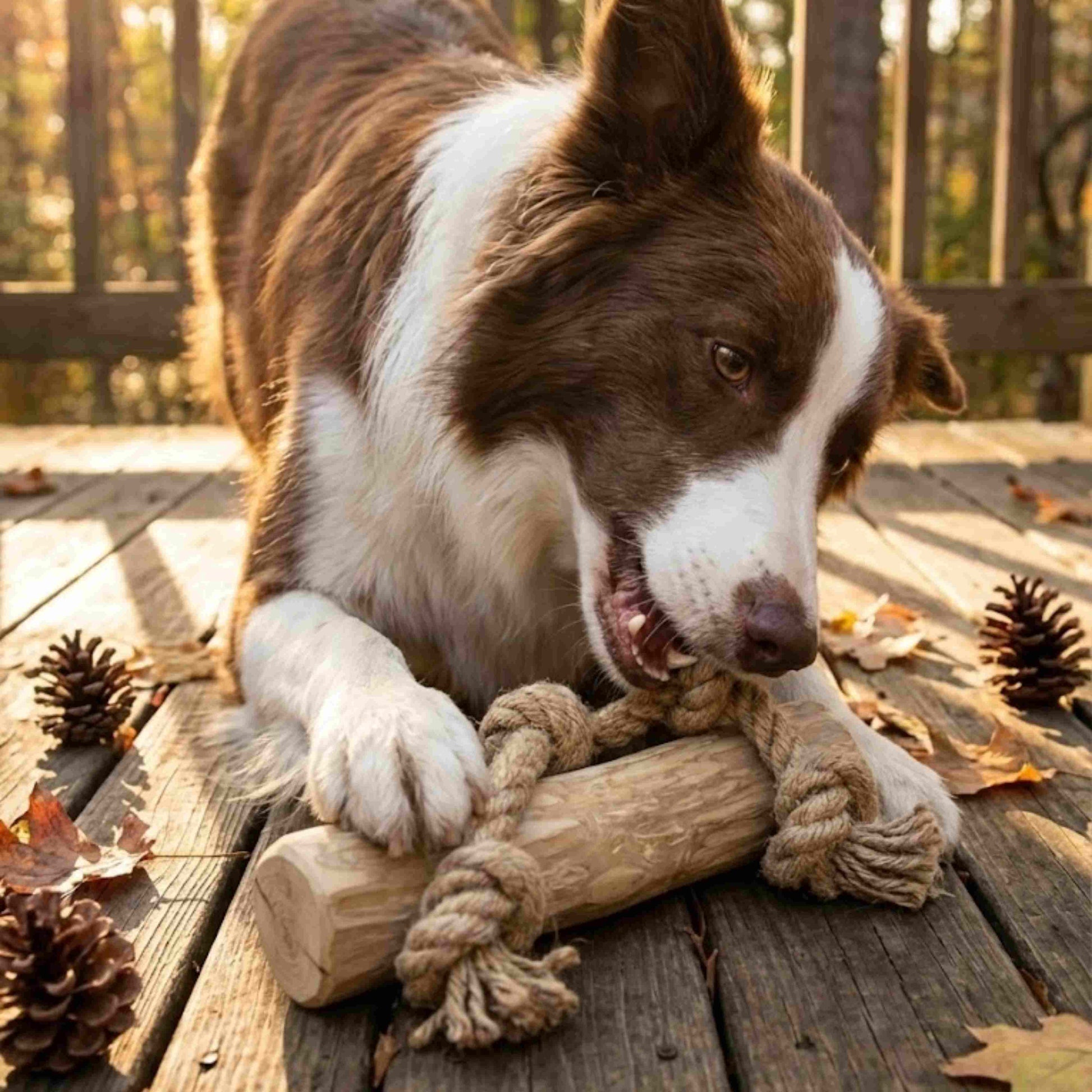 Koffieboomwortel staat bekend om zijn hardheid en natuurlijke slijtage, waardoor honden langdurig kunnen kauwen zonder scherpe splinters. Dit maakt het materiaal veilig en prettig in gebruik, ook bij dagelijks spelen.